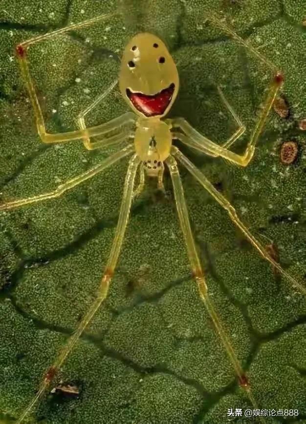 看这只蜘蛛,其背部天然生成一副类似人类笑脸的图案,故而得名“笑脸蜘蛛”,十分有趣。