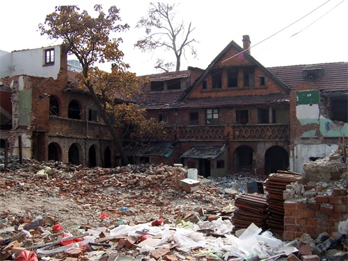 普爱南院后半部的两层洋房,原为老院办公楼,拍摄于2005年1月,当时拆除了一半,停了四年,最终全部拆除