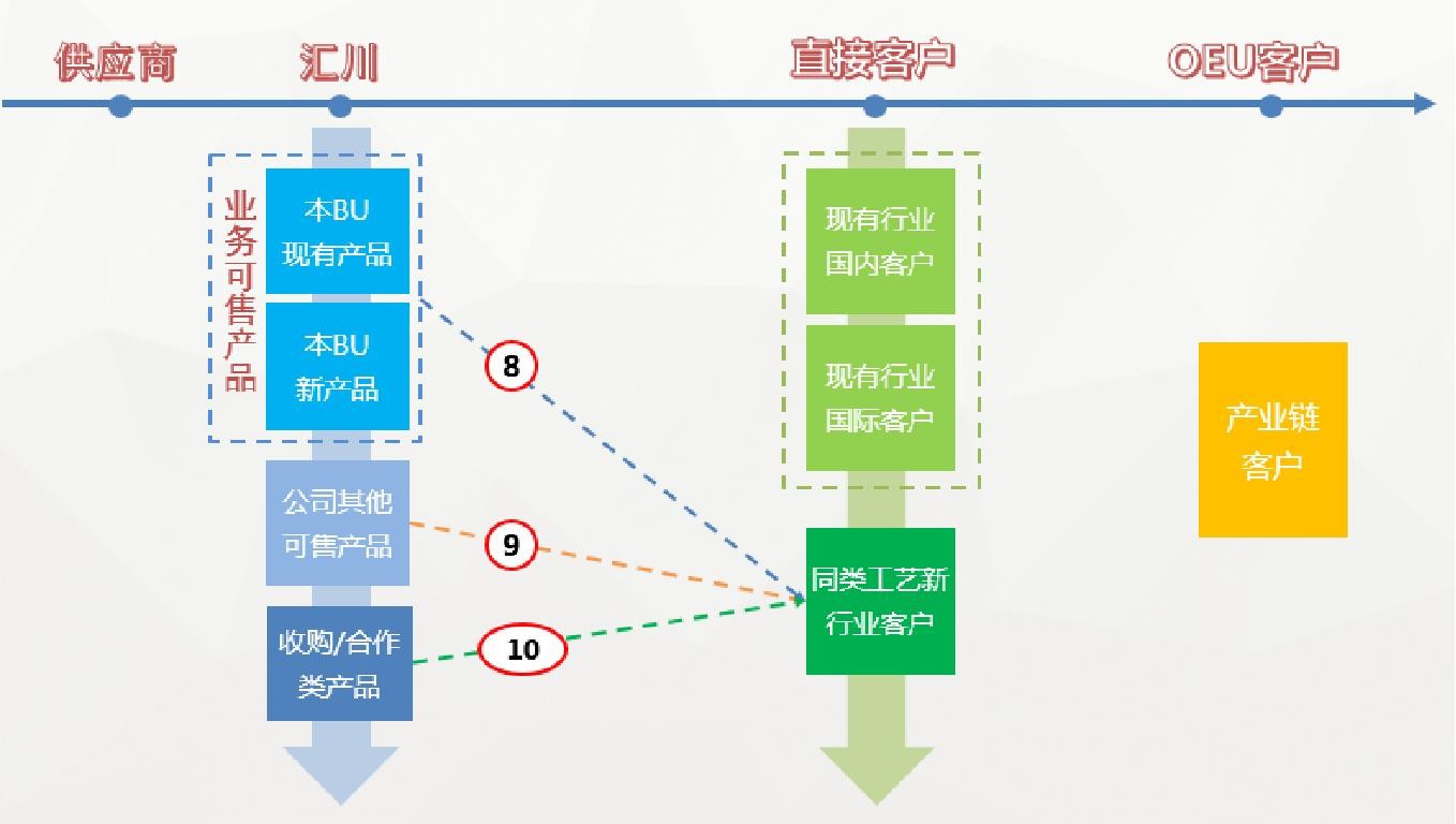 司目前的产品平台上实现供应;具有可支持率先突破的切入优势(性能、价格、关系)路径⑩:可通过并购实现新市场的快速突破,或打造新明星产品的重要机会(培育新业务)