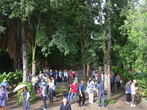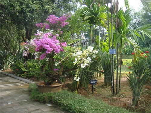 我们乘坐景交车,边看、边听介绍。车上司机讲解,车下导游讲解。每到景点,我们下车游览。空气中弥漫着花草的清香沁人肺腑,园中五彩斑斓,丰富多彩。橙红的炮仗花,雅致的番莲花,奇特的鸡蛋花,靓丽的朱槿花,还有那奇异的树、多姿的草。让人目不暇接。