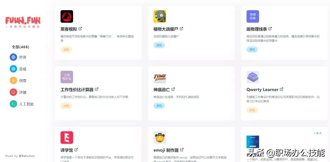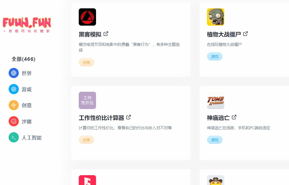 FUUN.FUN是一个专门搜罗有趣好玩内容的网站,收藏这一个网站等于拥有了上百有趣好玩的网站。