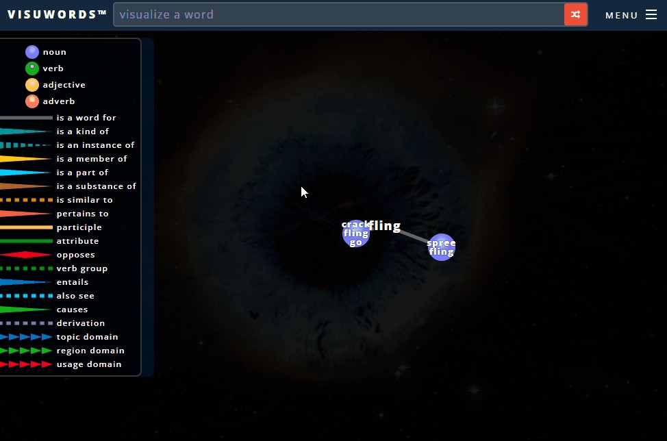 它的使用方法非常简单,直接输入一个单词,然后按下回车键,就会自动出现这个单词的近义词、反义词、从属关系词、因果关系词、属性、实例、分词、动词等。