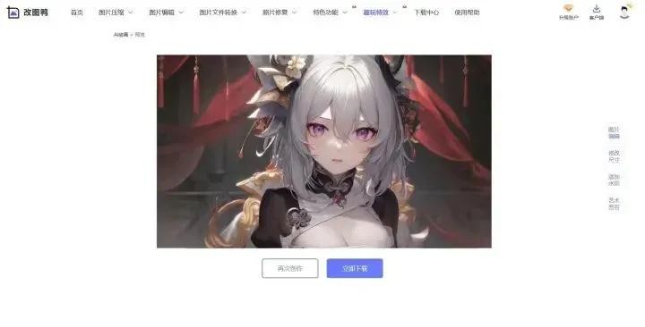 一个可以一键生成AI绘画作品的网站。支持生成二次元、漫画、3D、赛博朋克、古风等风格类型。操作也比较简单,是文生图的形式,文字输入图片描述,调整图片大小参数,就可以一键生成。
