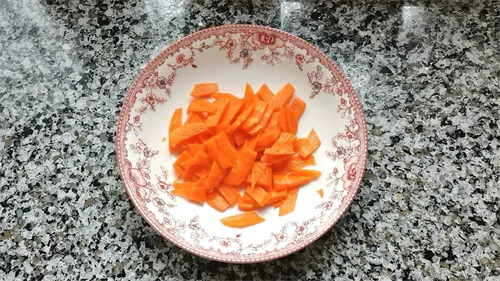 3,准备点胡萝卜片,也可以用红椒来搭配。