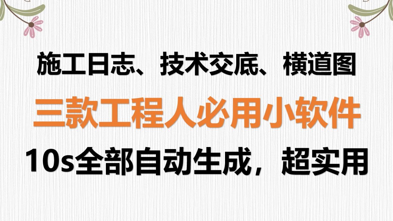 不知不觉已经在工地4年了,接触过了各方面的工作,但仍然觉得有些工作太繁琐,每天写施工日志,需要做技术交底,还要监控施工进度做横道图,一直到用上这三款施工日志、技术交底和横道图自动生成的小软件,10s就能全生成,告别繁琐工作和加班。