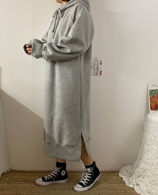 一件式的长版连帽衫,类似连身裙的概念。讲究的日本女孩,很喜欢用这样的特色,搭配不同颜色、款式的袜子,露出一点点腿部线条,营造出修长的身形。如果想要再更率性一点,也可用长裤、阔脚裤等来做搭配,同样具有修饰的效果,而且整体看起来也很时尚、大方!