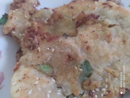 3.锅热加油,放入公婆饼,煎至两面金黄即可。
