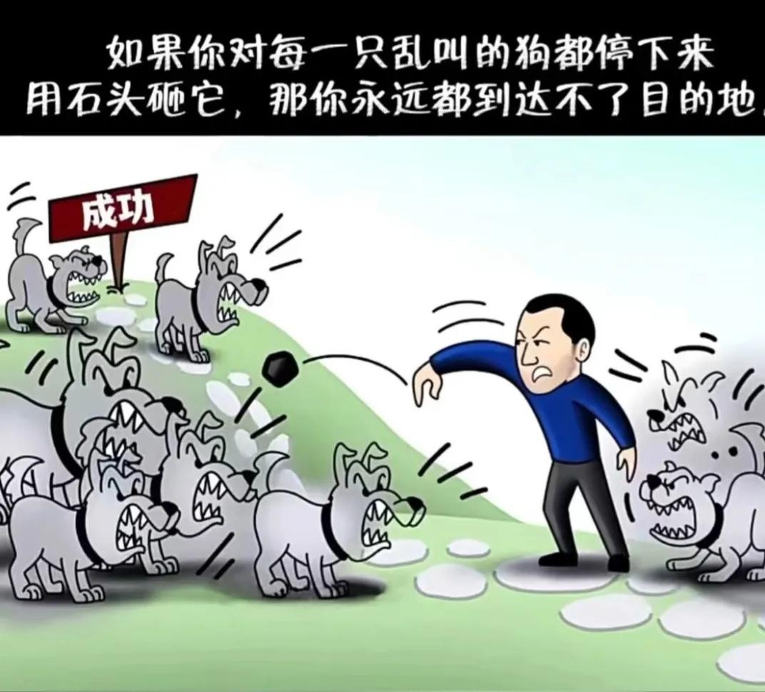 如果你对每一只乱叫的狗都停不下来用石头砸它,那你永远都到达不了目的地。