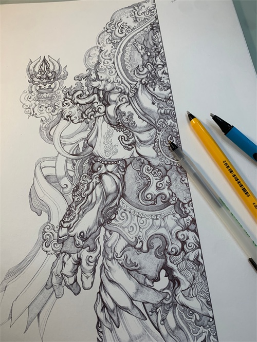 大荒铲手绘|四天王之八将军系列 - 韦天将军(2023.1.17)