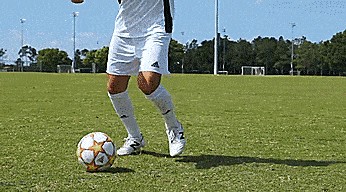 我们可以试试运气,把一只脚放在另一只脚的前面,用我们的脚后跟把球打向球门。如果我们是一个高手,也许我们甚至可以穿裆射门。