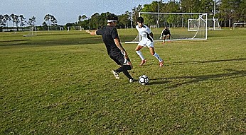 有时候当我们需要快速射门时,球又在我们前面有点远的时候。
