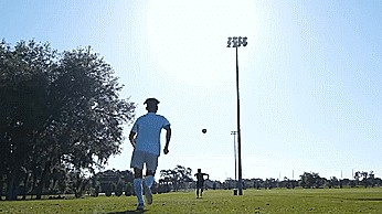 当球在空中飞到我们身后时,出于某种原因,我们的脸背对着球门。