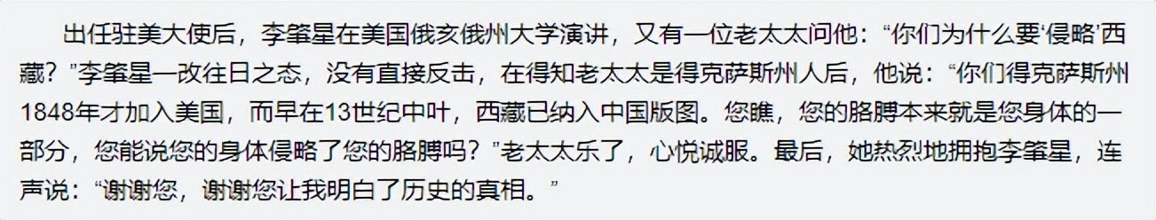 然而正在演讲途中,一位已经年迈的老太当众质问李肇星,为什么中国要“侵略”西藏?