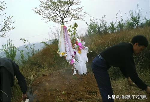 这种“挂墓”,就是将成白纸做的冥钱串起来,挂在杆子上,插在墓地,这一形式的本意就是“招魂续魄”。