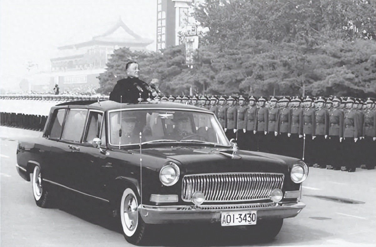 △中华人民共和国成立35周年国庆庆典上,邓小平乘敞篷车检阅部队