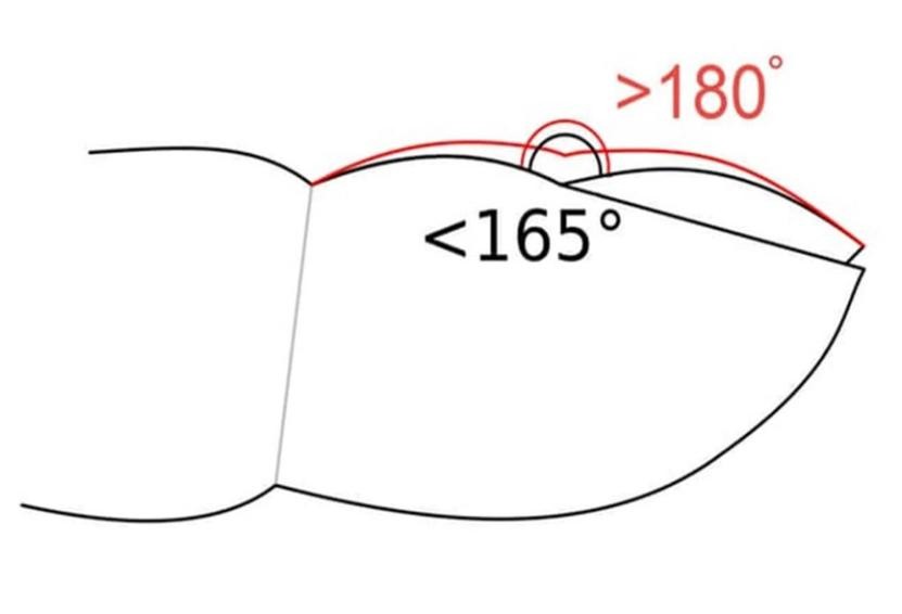 图1:近端甲皱襞与甲板之间的角度(Lovibond角)(图源参考文献)