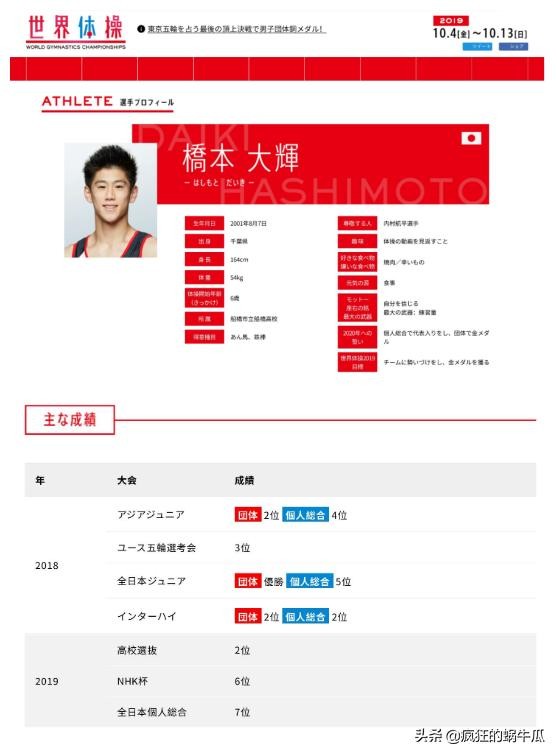 奥运冠军,这个头衔可算是天底下所有运动员的终极梦想。这既是对自己常年苦练的最高认可,也意味着人生将会扬名立万。几乎所有的奥运冠军都会受到人们的景仰和追捧,然而本届东京奥运会却出了一个前无古人的例外,他就是日本男子体操队的“出界冠军”桥本大辉。