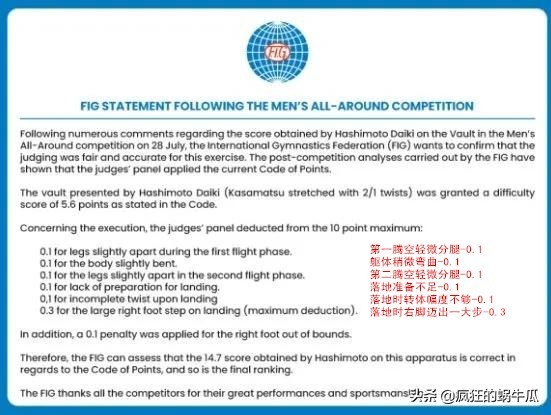 国际体操联合会(简称:国际体联)眼看桥本大辉被喷成了筛子,他们立马展现出了强烈的求生欲,专门出具了一份针对“桥本跳”得到14.7分的解释声明。这一下立马又把网友的怒气值拉满了,大家纷纷要求把肖若腾的“扣分流水”晒一晒,国际体联难道不懂撒一个谎需要编一百个谎来圆吗?这个工作量可整大了啊。
