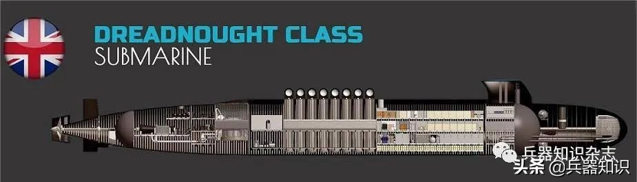 ▲ 英国“无畏”级弹道导弹核潜艇的结构示意图