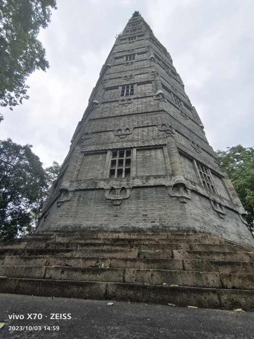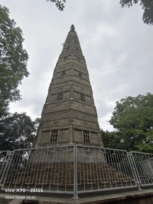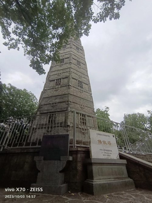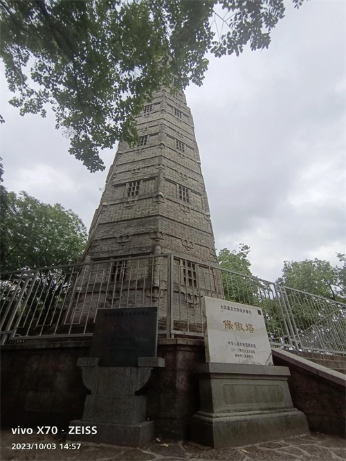 保俶塔是一座七层八面、修长玲珑的砖石塔,由塔基、塔身、塔刹组成,