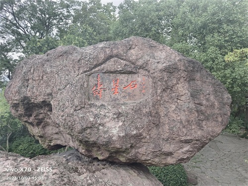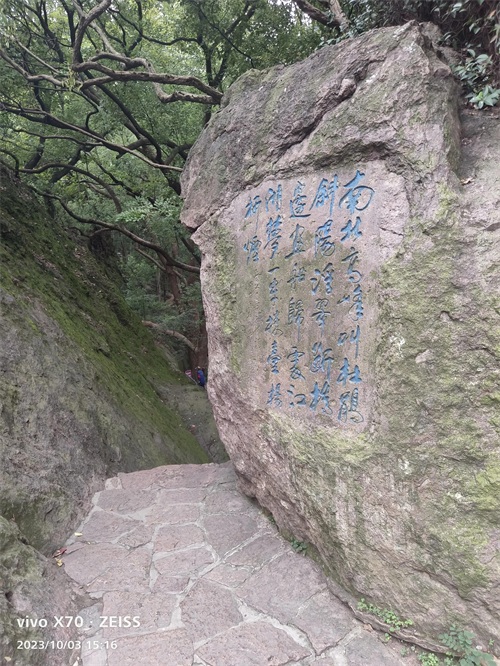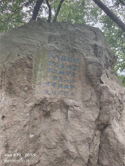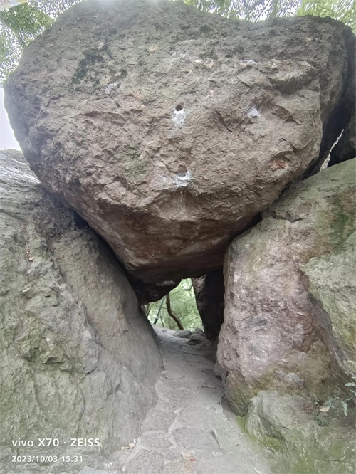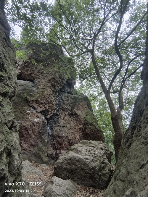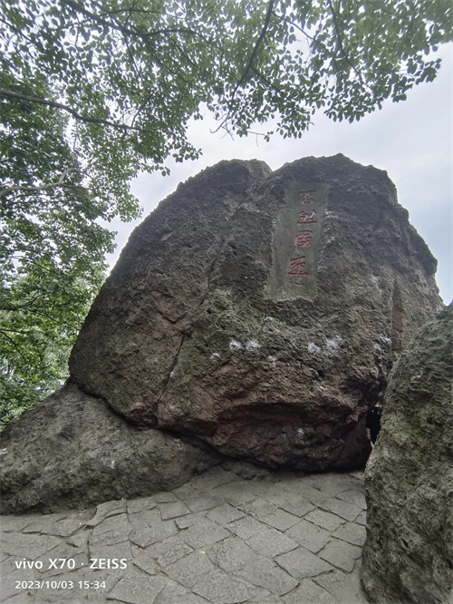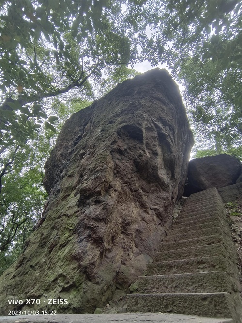 钱武肃王封寿星宝石山,山体属火成岩中的凝灰岩和流纹岩,阳光映照,其色泽似翡翠玛瑙,山上奇石荟萃。