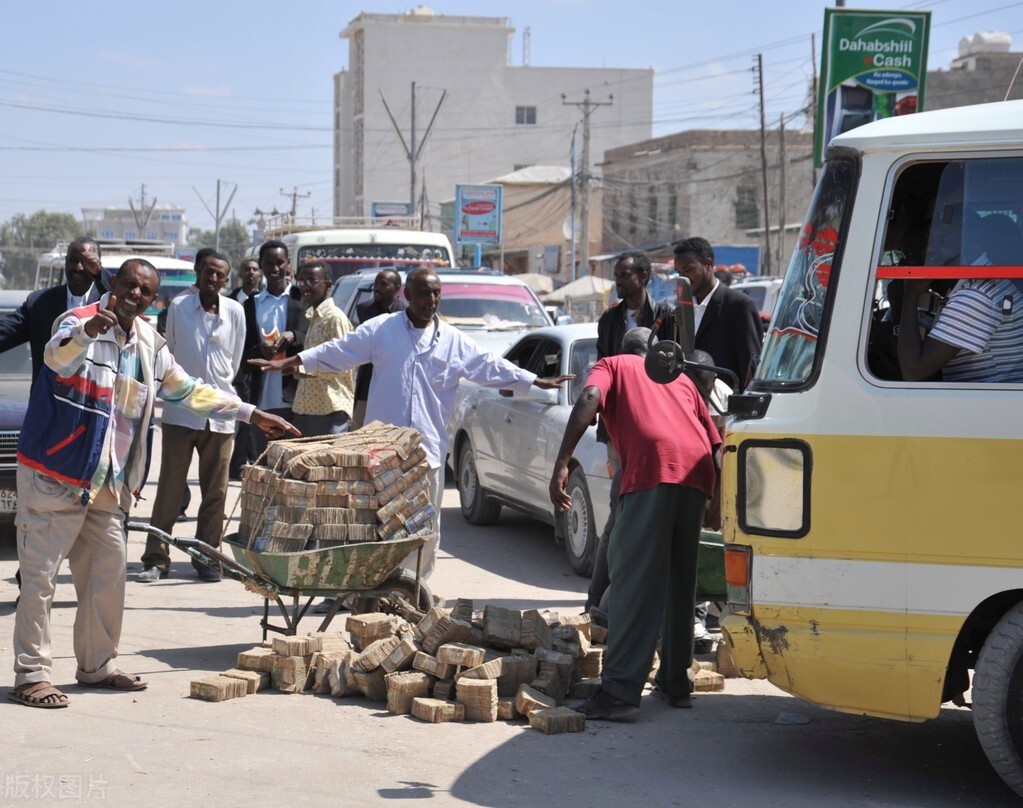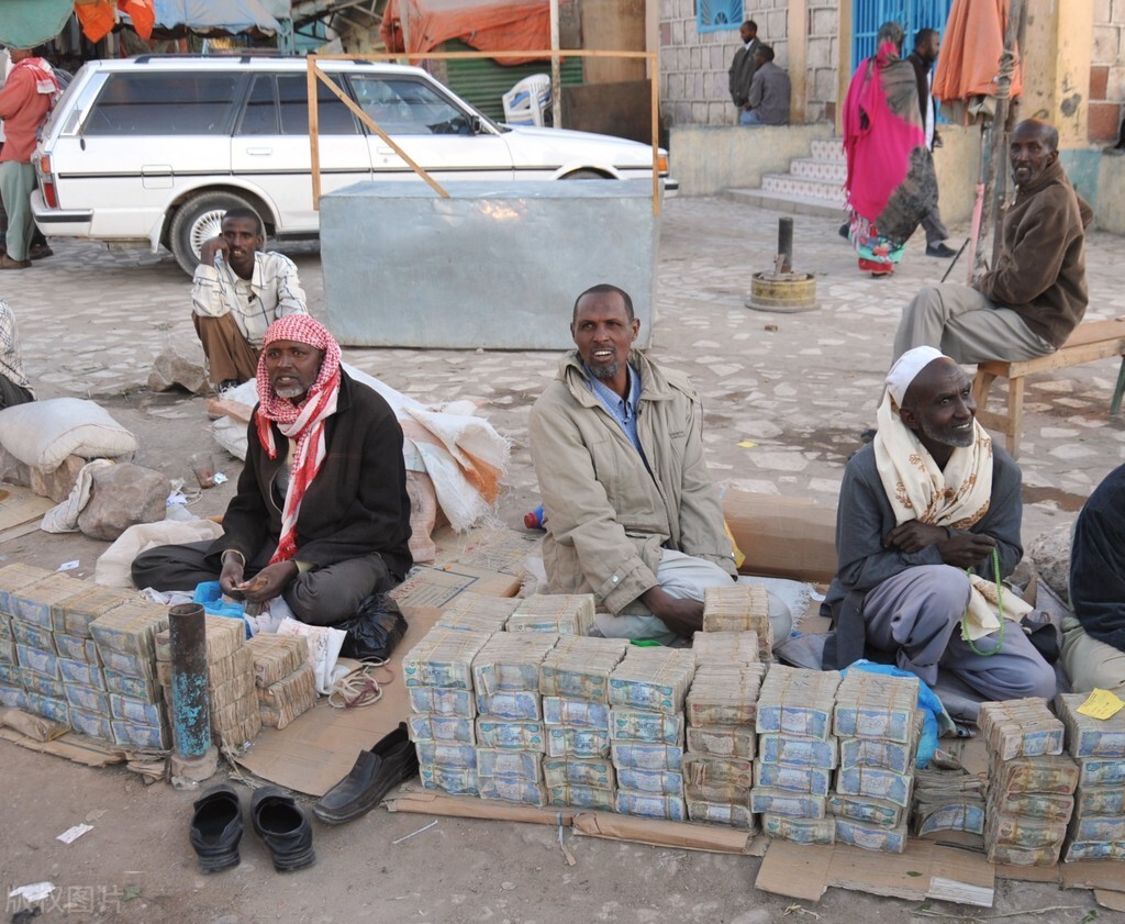 21.索马里西北部的“索马里兰国”,有着自己干的货币,但是货币面值非常小,上百美金就能换来一大包索马里兰发行的索马里兰先令。街面上随处可见换钱的摊子,一捆捆钱整齐摆放着,根本没有人会去抢,因为即使是全部抢走也没多少。
