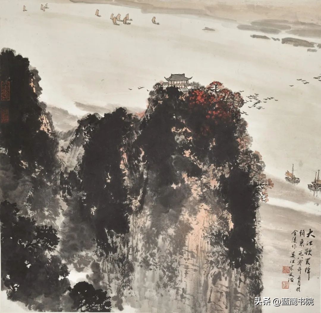 宋文治对色彩的运用独具特色。他善于在传统的水墨基础上,恰到好处地融入色彩,使画面既保留了水墨画的韵味,又增添了几分鲜活的气息。