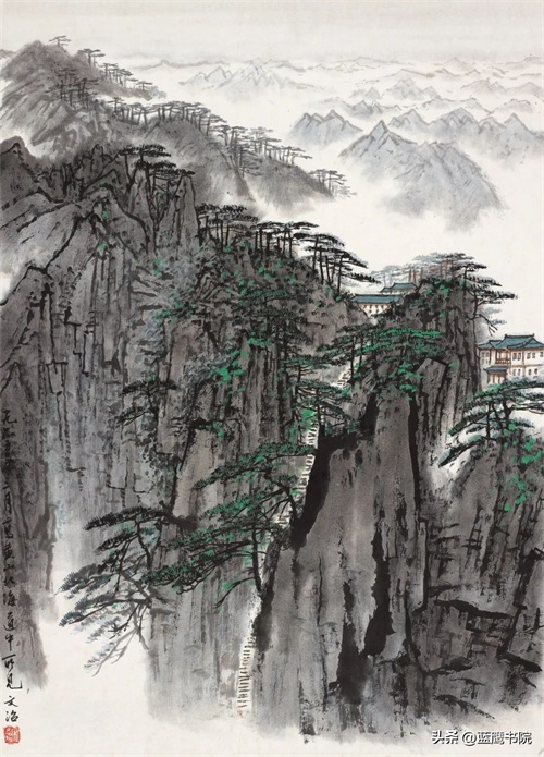 在用笔上,宋文治的线条刚柔相济。描绘山石的线条刚劲有力,勾勒出山体的轮廓和结构,凸显出山脉的雄浑与坚毅;而描绘流水、云雾的线条则轻盈婉转,如行云流水般自然流畅,表现出水流的灵动和云雾的缥缈。他的笔法犹如舞蹈,每一笔都恰到好处,充满韵律感,仿佛是在与山水进行一场无声的对话。