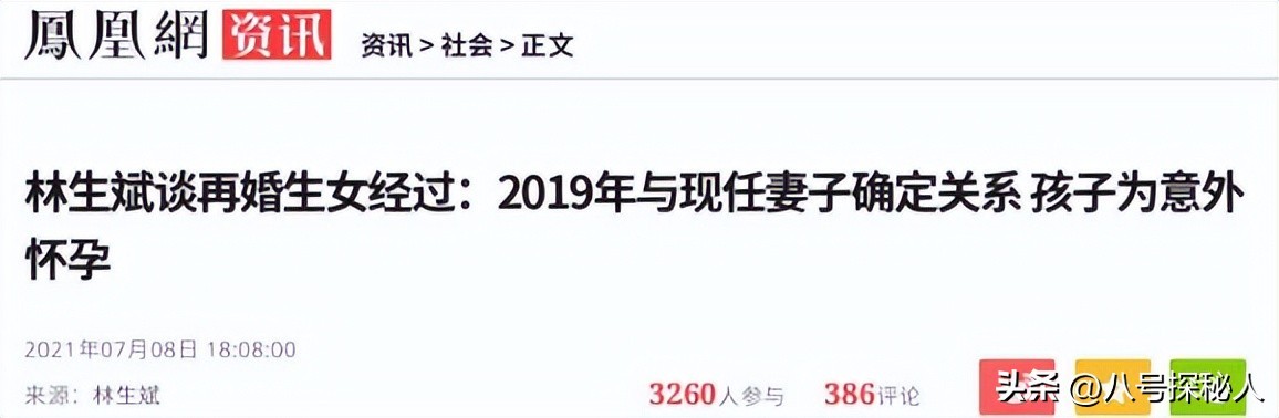凤凰网——林生斌谈再婚生女经过:2019年与现任妻子确定关系 孩子为意外怀孕