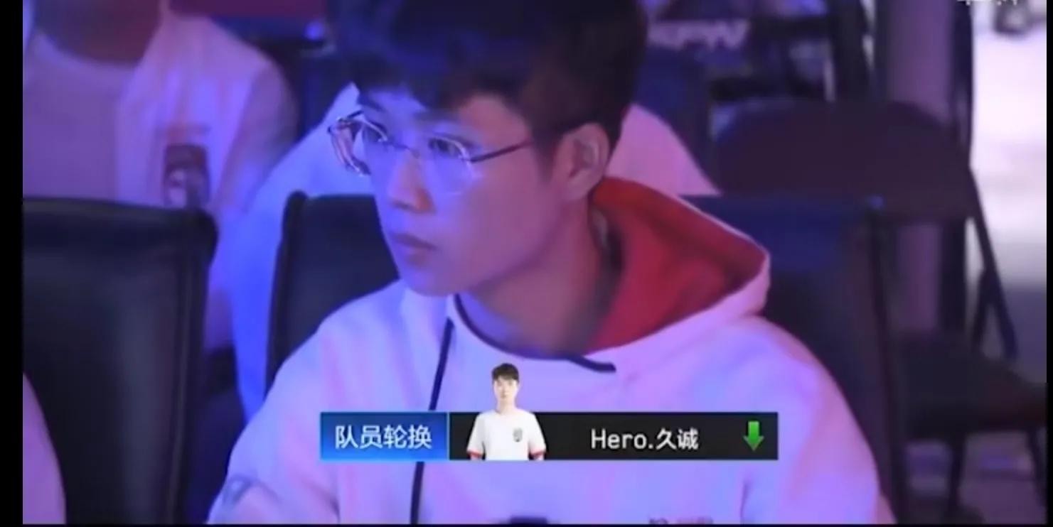时间来到2019年,这一年,是我们久诚选手比较坎坷的一年,记得大话王里你说2018年太顺利了一点,有时候我也在想是不是2018年把运气用光了,以至于后来满是遗憾。后来,hero大换血,久诚直接被摁上了替补席,只会在队伍状态不好的时候被抬上去打比赛,这一年11月你没有上场,在下面看着自己的队伍止步八强,那一刻你在想什么呢?