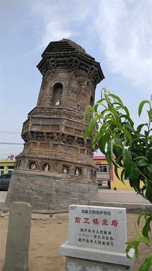 前卫歪塔,建于辽代,塔身高10米,塔身向东北方向倾斜了12度,塔尖水平位移1.7米,该塔建成后几经地震与洪水破坏,却始终斜而不倒。