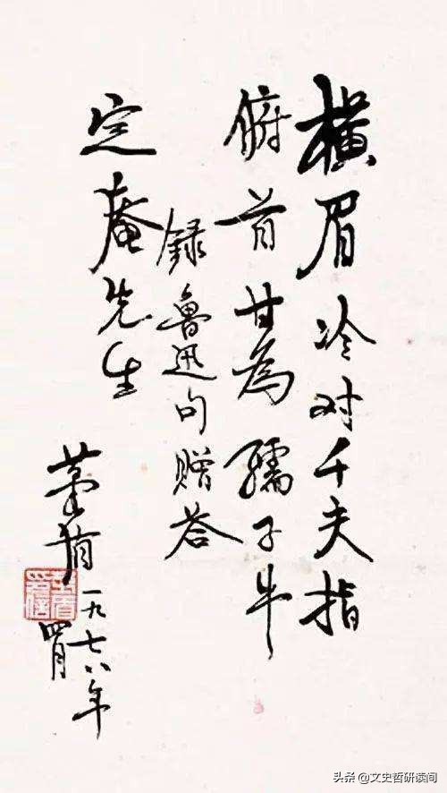 茅盾手书:横眉冷对千夫指,俯首甘为孺子牛