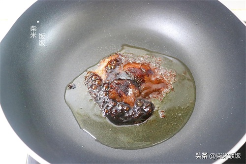 4,炒锅再加少许油,放入2勺甜面酱、1勺白糖、1勺老抽炒至冒泡。