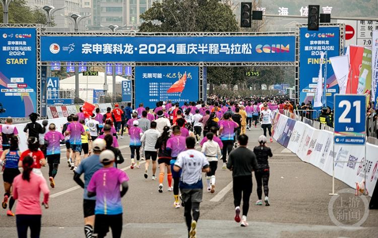 该赛事系中国田径协会马拉松A类认证,设置了半程马拉松(21.0975公里)和大众健康跑(约3.5公里)两个项目,来自32个省区市、12个国家和地区的约1.8万跑者齐聚山城,满怀一整年的热爱,一同奔赴下一年的山海。