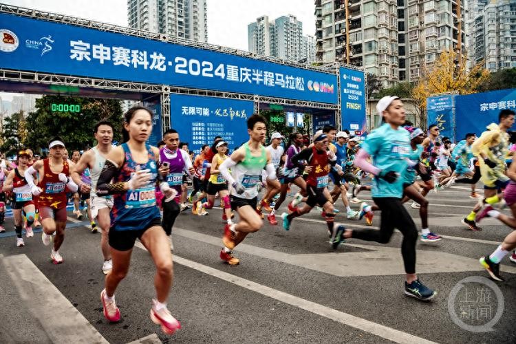 12月29日上午9时,2024重庆半程马拉松在巴南区龙洲湾市政广场鸣枪起跑。