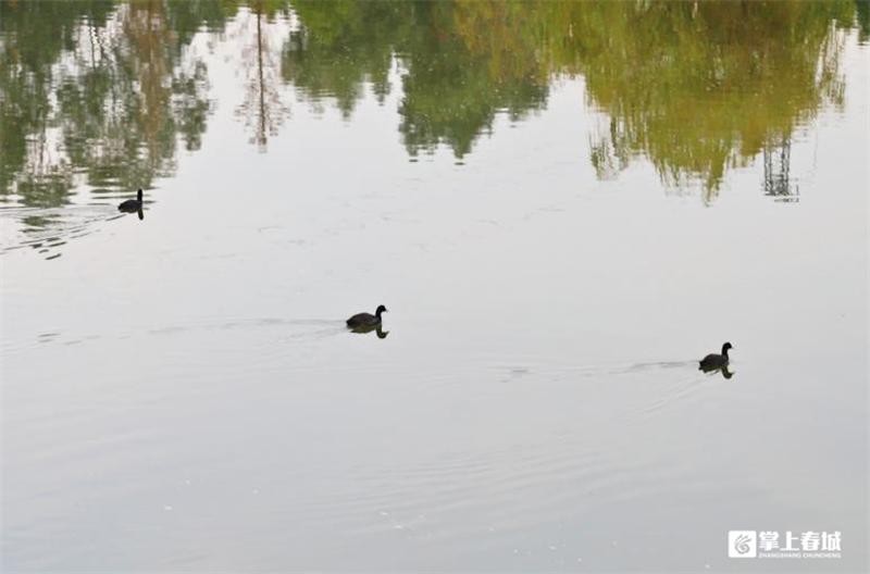 东川主城区湿地公园水面上,大白鹭、小野鸭,还有不知道名字的鸟儿自由自在飞翔、划水、觅食还会站在枝头晒日光浴!这些小精灵们,无忧无虑,自由自在,让人忍不住感叹东川的小动物幸福感十足。