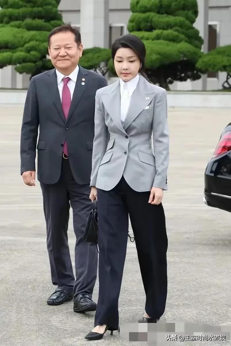 9月19日,尹锡悦在韩国首尔机场正式启程前往捷克!金建希穿着一件高级灰小西装搭配黑色西装裤,就像一个职场丽人,尽显知性优雅。
