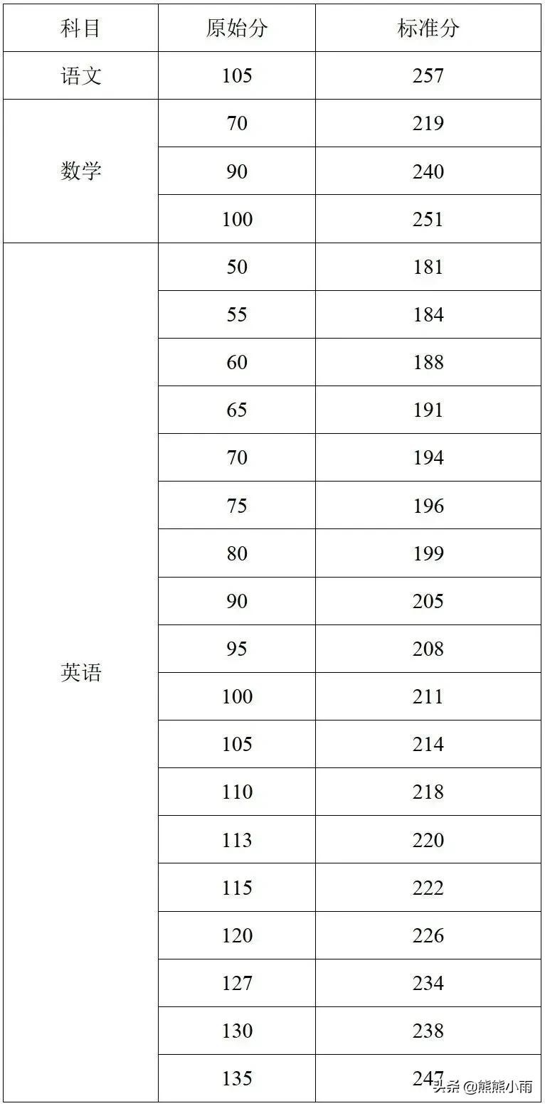 下图就是2020年海南省高考语文数学英语成绩原始分和标准分对照表