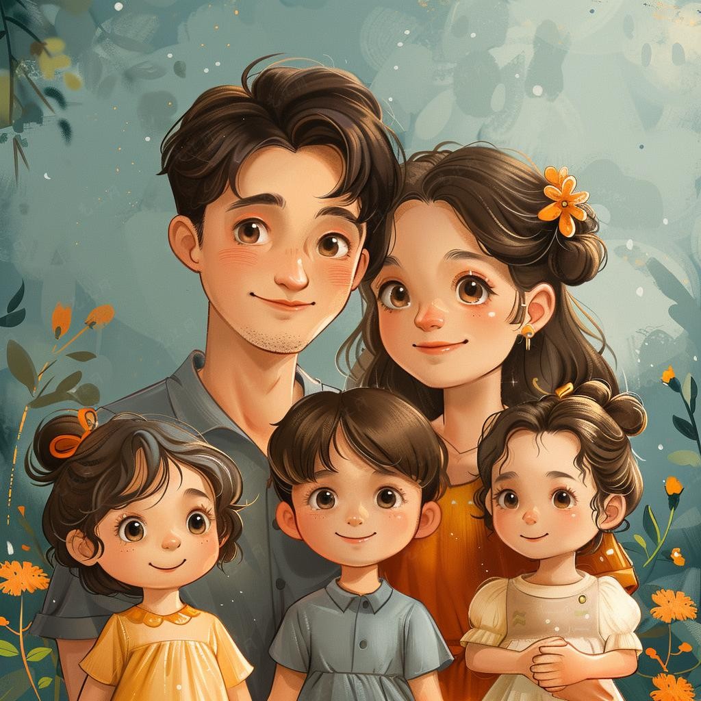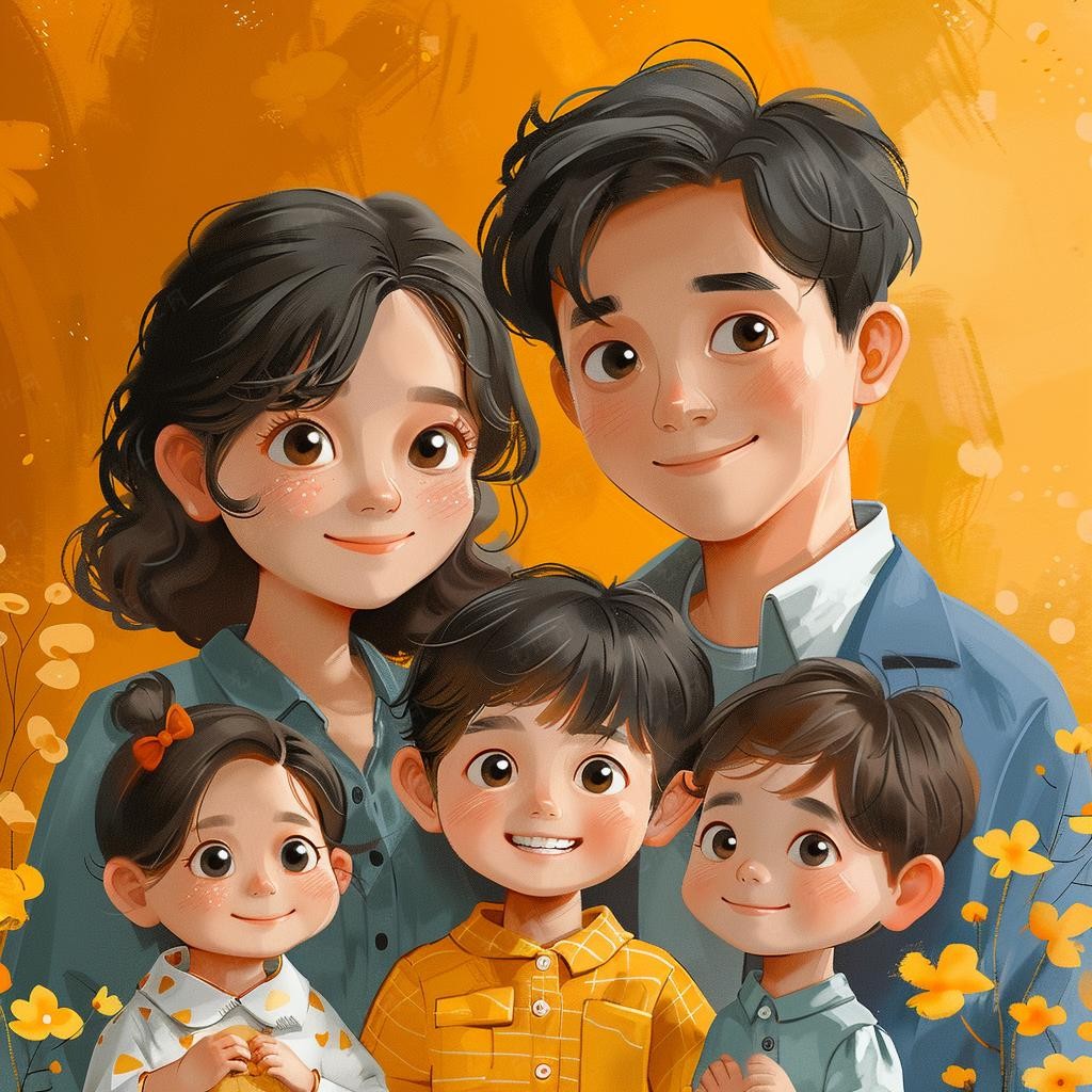 一家五口,幸福满溢,龙凤双胎更是锦上添花!这个三胎家庭的亲子头像,温暖治愈,让人心生向往。