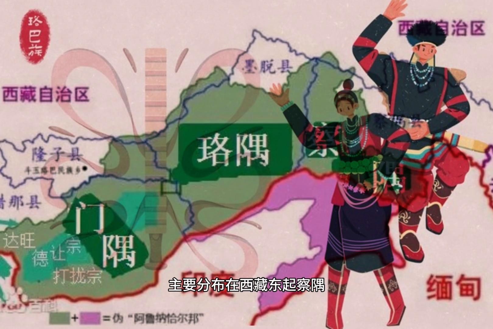 ·洛巴族人口约零点三七万人,主要分布在西藏东起察隅,西至门隅之间的珞渝地区。