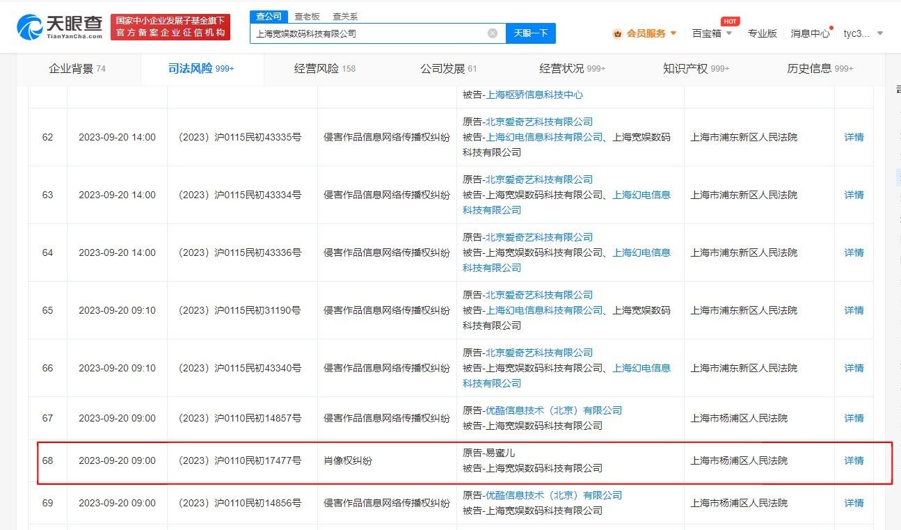 近日,有资料显示,B站关联公司上海宽娱数码科技有限公司新增一则开庭公告,案号(2023)沪0110民初17477号,原告为巴啦啦小魔仙大电影凌美雪扮演者易蜜儿,被告为上海宽娱数码科技有限公司,案由为肖像权纠纷,该案将于9月20日在上海市杨浦区人民法院开庭审理。