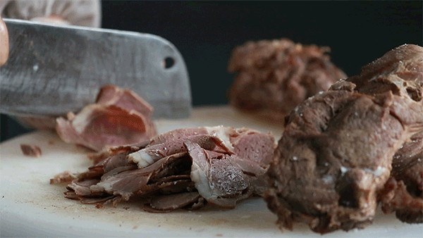 薄切山羊肉细嫩不膻,别看小小一片,入口却是肉香十足,肉质细嫩,肥瘦相间的羊肉,瘦肉紧实肥肉脂滑皮韧,淋上羊骨熬制的原汤精华,瞬间吸满汤汁,吃在嘴里口口带汁!鲜香嫩滑!好吃!