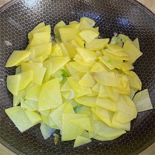 制作5:炒土豆片,翻炒2分钟