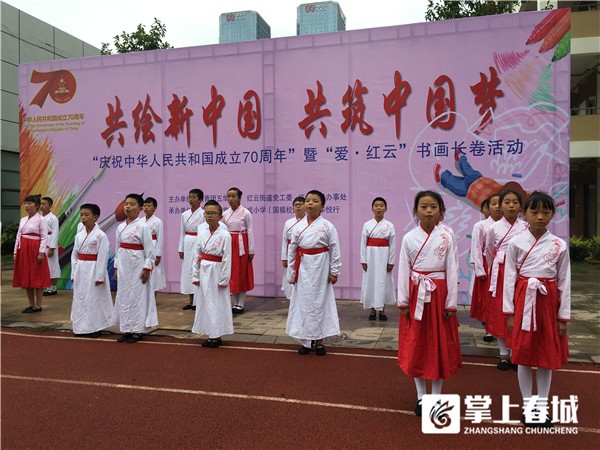 掌上春城讯你心中的祖国是什么样?拿起画笔画出来吧!9月21日,“共绘新中国·共筑中国梦”——庆祝新中国成立70周年暨“爱·红云”书画长卷活动在武成小学国福校区开展。红云街道辖区的70余名老年书法爱好者、大学生志愿者、少先队员以“祖国在我心中”为主题,在70米画布上用小小画笔书写或绘出祖国的大好河山。