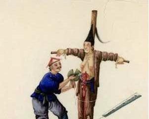 1864年11月18日,洪天贵福被绑上牛车,四根长钉将他的四肢钉在车上,惨叫之声让人心悸。押到市曹凌迟示众,刽子手从头面开始,一直割到小腿,每割十刀就大喊一声“呦呵”,从早晨割到晚上,一直割了1003刀洪天贵福才死去,哀嚎之声响彻整个市曹。