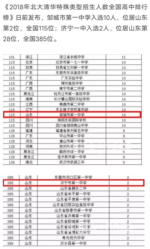 不管是济宁一中,嘉祥一中,前面都必须带上济宁的名头,但是有两家可以直接带上山东的名头,那就是邹城跟曲阜,因为邹城跟曲阜属于济宁代管。