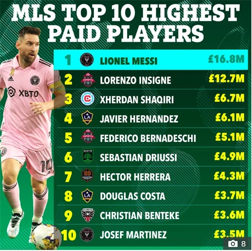看看梅老板在美国赚多少钱?美国职业足球大联盟公布了梅西的薪资