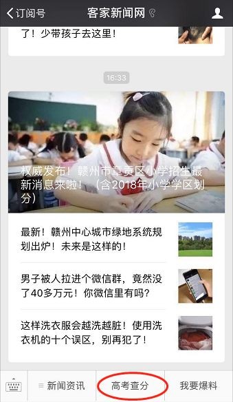 在赣州发布、客家新闻网公众号下方菜单栏