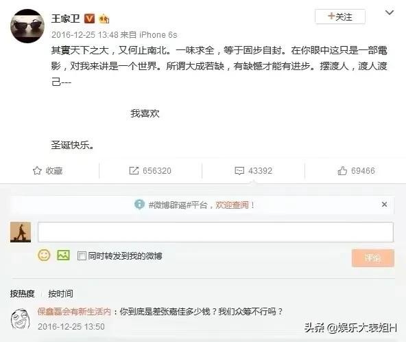当初在王传君被封杀的消息传出时,就有很多人好奇为什么,而之所以他被封杀其实是和一位导演有关,这位导演就是王家卫,在2016年底,由王家卫监制的电影《摆渡人》上映,而这部电影的票房一度从6分掉到了4.1分,随后一大波“烂片”的评论接踵而来,而面对众多的差评,王家卫则发文表示:“其实天下之大,又何止南北,一味求全,等于固步自封,在你眼中这只是一部电影,对我来讲是一个世界,所谓大成若缺,有缺憾才能有进步,摆渡人,渡人渡己。——我喜欢”。