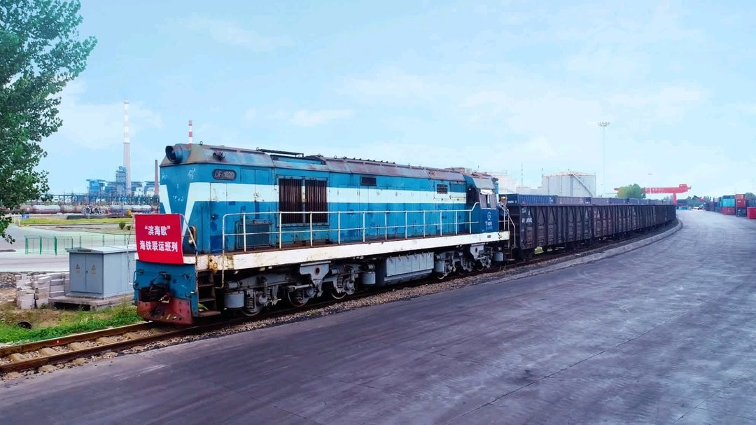 近日,一列装载1680吨的纸卷集装箱货物列车从京博物流铁路专用线驶出,一站直达黄岛港站接驳海运,通过铁海联运发往不同国家和地区。